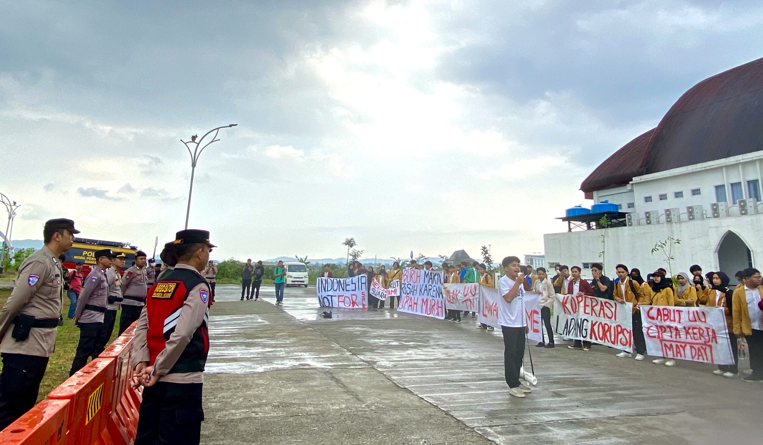 Guyuran hujan dan deru klakson kendaraan mengiringi perjalanan massa menuju titik aksi di belakang Menara Pandang Teratai, tempat di mana gedung DPRD yang baru megah berdiri. Di balik barisan massa dan spanduk bertuliskan kritik, tersimpan akumulasi keresahan mendalam yang telah menggelayuti masyarakat.